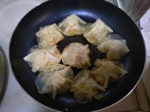今日は包まない餃子を作りました。 餃子の皮をかぶせるだけで、手間いらずで簡単です。 味は普通の餃子ですけど…料理を作るのは楽しいです🥰